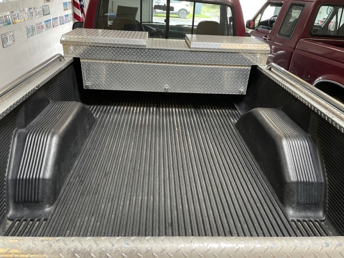 Extérieur avec aussi de beaux embellissements comme ce tour de benne en inox, casquette de parebrise, Boite à outils en inox, Jantes American Racing.